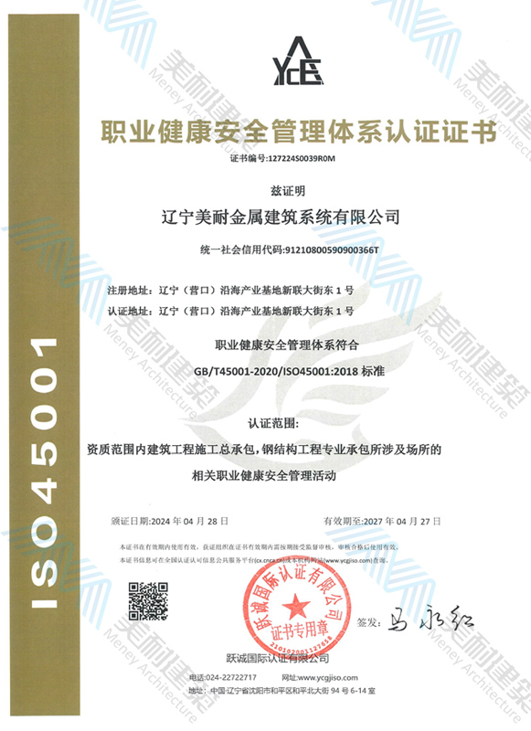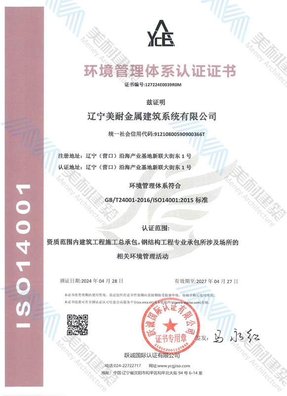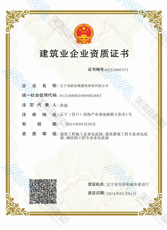 遼寧美耐金屬建筑系統(tǒng)有限公司位于遼寧(營口)沿海產(chǎn)業(yè)基地,專注于預制金屬建筑系統(tǒng)領(lǐng)域,是一家集工業(yè)建筑設(shè)計、制作、施工及相關(guān)的技術(shù)咨詢與服務(wù)為一體的綜合性服務(wù)企業(yè)。作為國家鋼結(jié)構(gòu)協(xié)會會員、中國建筑金屬結(jié)構(gòu)協(xié)會會員單位與國家高新技術(shù)企業(yè),美耐建筑集建筑工程施工總承包、鋼結(jié)構(gòu)工程專業(yè)承包等多種資質(zhì)于一身,并擁有22項鋼結(jié)構(gòu)建筑領(lǐng)域?qū)@?項軟件著作權(quán)。